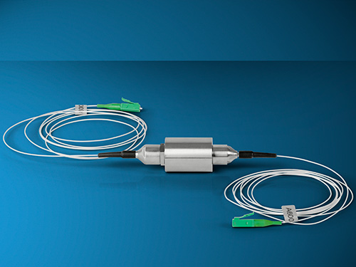 The new optical single-channel rotary joints were developed for single-mode fibers with the requirement “low transmission loss at a simultaneously high return loss.” In an operating temperature range from -40°C to +85°C, the transmission loss for the wavelengths 1310 nm and 1550 nm is a maximum of 1.0 dB, and the return loss is 55 dB.