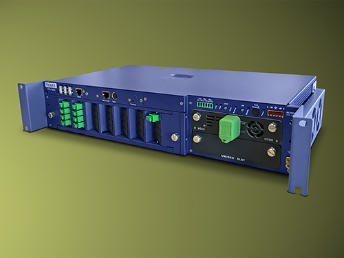 VIAVI offers the smartOTU, which is a remote monitoring system for optical fiber networks. The 2U unit can be integrated into a typical 19” rack via a mounting kit and can track up to 48 individual fibers simultaneously. The number of fibers can be set via a practical optical switch.