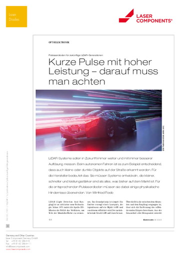 LiDAR systems for autonomous driving require fast pulse laser diodes (PLDs) with ever-improving resolution and range. For reliable 3D distance measurements based on the time-of-flight (ToF) principle, they must guarantee high pulse frequencies and have sophisticated control electronics