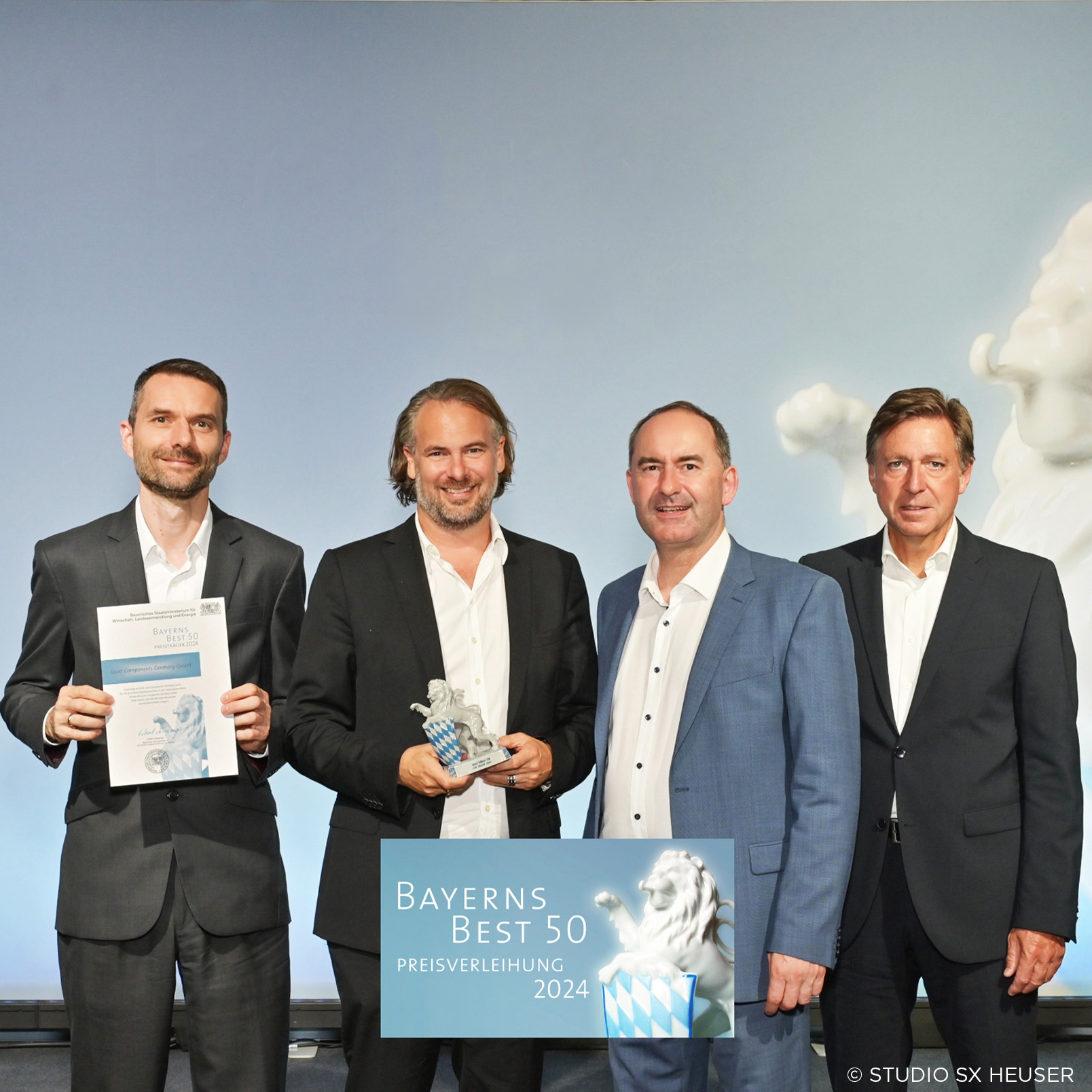LASER COMPONENTS gehört zu den wachstumsstärksten Mittelständlern des Freistaats Bayern und wurde 2024 in den Kreis von „Bayerns Best 50“ aufgenommen. Symbol dieses Erfolgs ist der „Bayerische Wachstumslöwe“, den Patrick Paul, CEO der Muttergesellschaft PHOTONA GmbH und Sven Schreiber, Geschäftsführer der LASER COMPONENTS Germany GmbH, gestern im Rahmen der feierlichen Preisverleihung von Staatsminister Hubert Aiwanger überreicht bekamen.