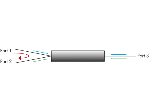 SEDI hat einen so genannten „High Directivity (HD) Verzweiger“ speziell für Sensor-Anwendungen entwickelt. Mit Directivity wird das Übersprechen von Port 1 zu Port 2 bezeichnet (s. Abb: roter Pfeil). Die Produkte bieten die Möglichkeit, eine Lichtquelle in den Port 1 einzukoppeln (blauer Pfeil) und das reflektierte Signal in dem Port 2 zu sammeln (grüner Pfeil). Hierbei ist es wichtig, dass das zurückkommende Signal (grün) nicht von dem übersprechenden Signal (rot) gestört wird.