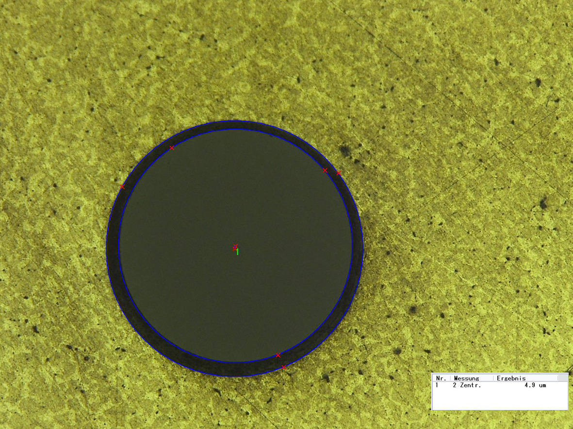 Exzentrizität. Ein wichtiges Qualitätsmerkmal für High-Power LWL Kabel ist die Exzentrizität vom Faserkern zum Ferrulendurchmesser. Dieser Wert sollte, abhängig vom Faserkerndurchmesser, nicht größer als 10 - 20 µm sein und kann mit einem hoch präzisen Messmikroskop genau bestimmt werden. Auf Wunsch werden die High-Power LWL Kabel gegen einen geringen Aufpreis mit einem entsprechenden Warenausgangsprotokoll geliefert. Neben den Dämpfungswerten und der Exzentrizitätsmessung wird auch ein Foto der Faserendfläche beigelegt.