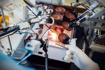 In the clearly defined area, the surgeon can recognize even the smallest detail thanks to high-contrast illumination and thus make optimum use of the robot’s precision.
