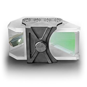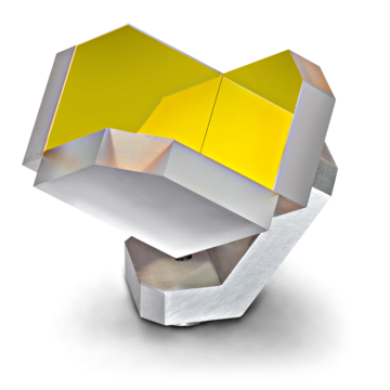 These reflectors consist of a triple prism and are based on total reflection. The surface of the component through which light enters is typically equipped with an AR coating to keep scatter loss to a minimum. This coating allows the component to operate at a very high efficiency level.