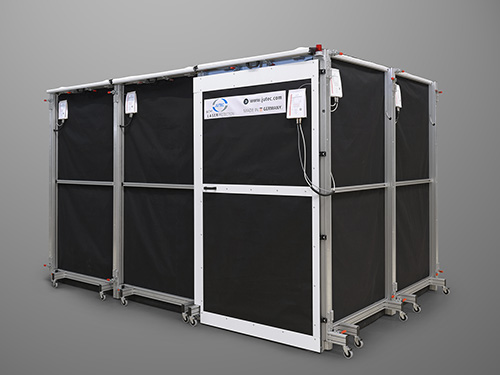 The special feature of the certified JUTEC protective fabric is an active sensor textile that is connected to the laser’s circuitry via switch-off electronics. If the fabric is damaged, its physical properties change in such a way that the laser is switched off via the electronics. Beam emission is stopped immediately.