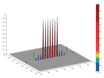 L’efficacité théorique de cet élément 1 x 7 est approximativement de 77%, c‘est-à-dire environ 11% de l’énergie incidente est restituée dans chacun des faisceaux échantillons crées. Le reste de l’énergie est distribué sur les faisceaux de plus faibles ordres.