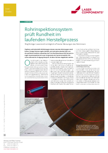 The perfect roundness of pipes and pipelines must meet very strict industry standards due to high safety requirements. The new pipe inspection system GMS-I from MSG Maschinenbau measures the internal contour of the pipe using a freely suspended measuring lance equipped with a newly developed ring laser module, the FLEXPOINT® radial. This machine vision innovation enables corrections during the manufacturing process for the first time and significantly speeds up the measurement procedure.