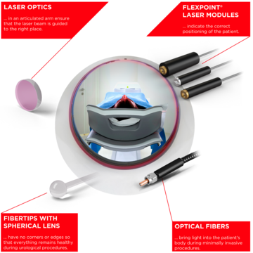 Les lasers pilotes jouent un rôle particulier : la lumière invisible dans le spectre infrarouge est souvent utilisée en radiothérapie et en chirurgie. Cela rend l'orientation difficile pour le médecin traitant. C'est pourquoi un point laser visible indique la position exacte du faisceau infrarouge.