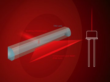 Les PLD à lentilles FAC intégrées sont disponibles pour les longueurs d’onde de 905 nm et de 1 550 nm. La divergence de l’« axe rapide » est réduite jusqu’à 3,8 mrad à 1 550 nm et jusqu’à 33 mrad à 905 nm. À la demande du client, elle peut être ajustée davantage.