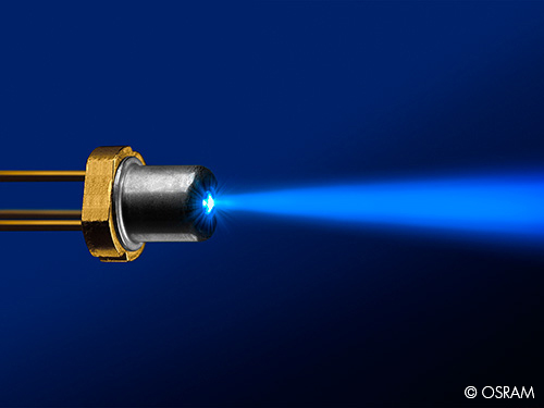 En 2013, Osram Opto Semiconductors a lancé les diodes laser bleues avec une efficacité de 30% sur le marché. A une longueur d’ondes de 450 nm, des versions avec une puissance de sortie optique allant jusqu’à 50 W sont actuellement disponibles.