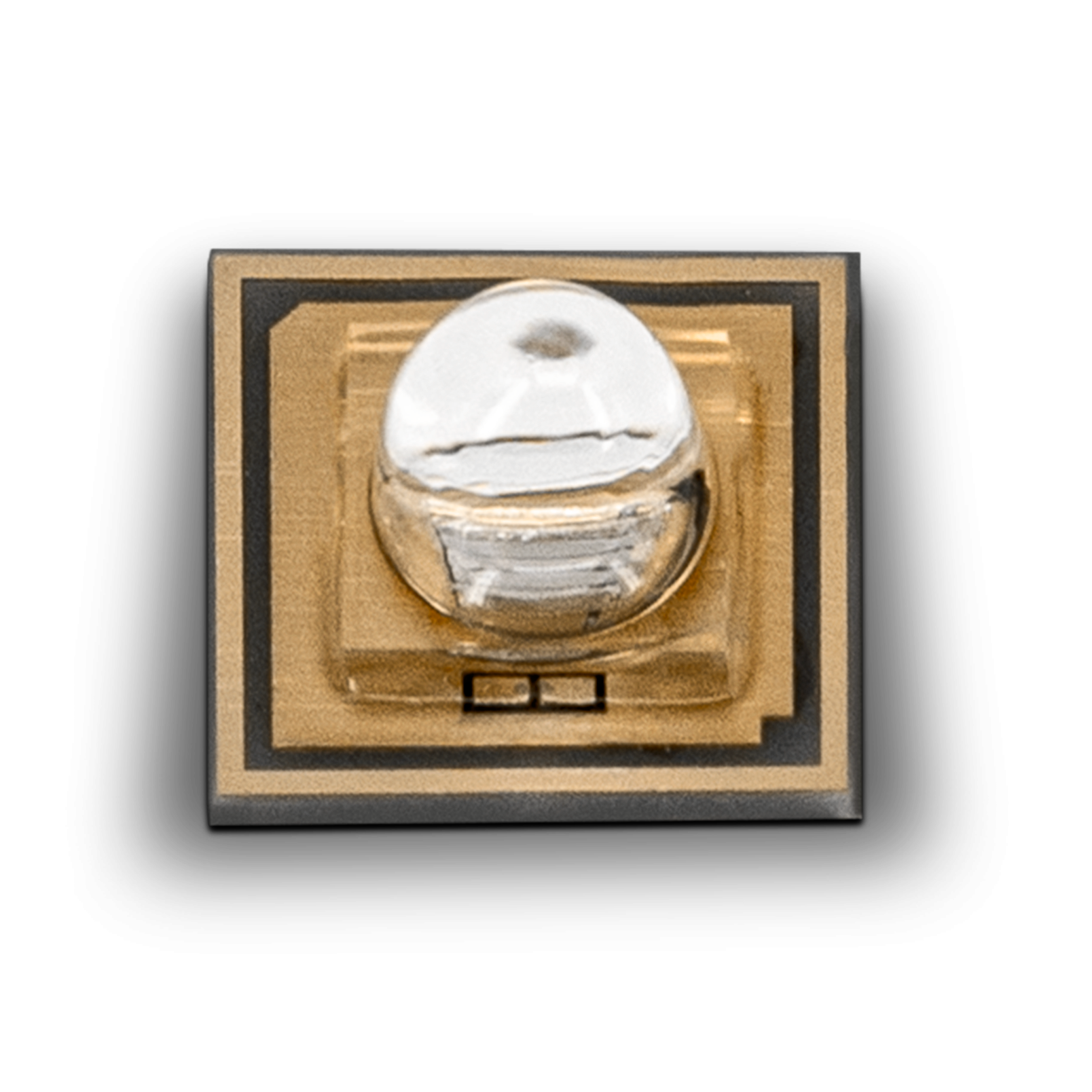 The higher the intensity of UVC radiation, the shorter the irradiation time for efficient disinfection. The latest addition to Bolb’s S6060 series delivers focused UVC radiation at a 33° beam angle. This is provided by a lens integrated into the chip design. Compared to the standard 150° models, the narrower beam angle means that the intensity of the UVC radiation remains high even at some distance from the LED. At a distance of 10 cm, it is still 1 mW/cm². Within 3 seconds, for example, a dose of 3 mJ/cm² would be reached. This is a crucial advantage for use in the disinfection of water, air, and surfaces.