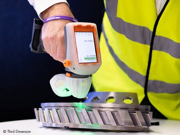The slightest change in the clearance gap between the fan blade and the surrounding casing may cause inefficiency, unreliability and noise production. Until recently, this distance was measured by hand using a slip or taper gauge. Naturally, this method was time-consuming and prone to inaccuracies. More accurate and consistent results can be obtained using the laser-based GapGun. British specialists at Third Dimension developed this specialized gap measuring tool using MVnano line laser modules by LASER COMPONENTS. It has been successfully deployed by leading aeronautics engine manufacturers for both gap and surface measurements. It is also possible to take radius measurements on the trailing and leading edges of the blade – including form measurement. The output from the GapGun can be a simple go/no go decision, as recorded measurements are compared to acceptable limits, or the profile can be exported as a point cloud, which may be imported into a CAD program to compare measurement data to the nominal values. In industry applications reliability and repeatability of the results were thus improved by a factor four.