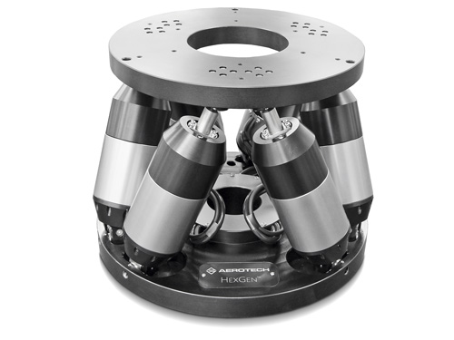 Aerotech’s HexGen™ hexapods represent a significant advance in six-degree-of-freedom positioning performance. The newest member of the HexGen™ family, the HEX300-230HL, is targeted at medium-load, ultra-precision applications ranging from sensor testing to synchrotron sample manipulation. Aerotech’s HexGen™ hexapods are the only hexapods on the market today that provide guaranteed positioning accuracy specifications below 5 μm. The HEX300-230HL’s superior structural design offers the user a generous load capacity of up to 45 kg. The platform and base can be easily modified with user-specific features or mounting patterns. It features a 100 mm diameter clear aperture in the platform, while a 60 mm diameter clear aperture in the base allows workpiece access from the bottom.