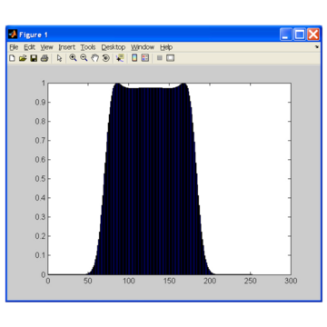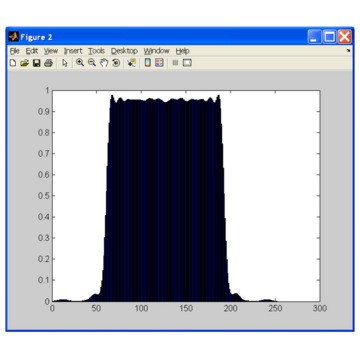 Comparing the profile with that of the traditional Top-Hat (Fig. 7), we see that the overall uniformity is about the same. However, the traditional design exhibits virtually no side lobes but has a larger transition region.