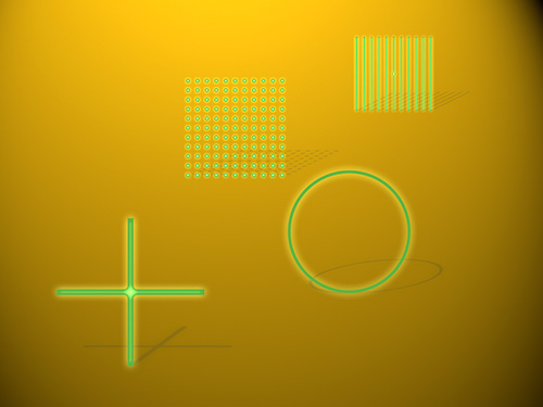These new DOEs include several new patterns for green lasers with a wavelength of 520 nm, such as a green cross with an opening angle of 50° or a rectangular pattern featuring 15 parallel lines.