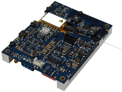 The BFS-VRM 03 is one of the world’s fastest analogue modulated drivers for seed applications such as DVD-disk mastering and printing. The output current from zero to 2.5 A is delivered on a single board suitable for OEM integration with enough power to overdrive single mode diodes. Pulse widths span 1ns to CW and are continuously addressable via an analogue input signal, representing a global first. The maximum output power from the driver is 12.5 W pulsed or 2.5 W CW.