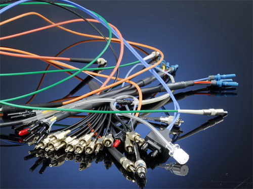 In-house production includes standard cables for data transmission, special cables for sensor and medical technology, and also fibre bundles and fibre couplers. Most assemblies utilise inexpensive HCS fibres/cables with SMA and ST connectors. Individual prototypes and small quantities can be tailored to one’s needs.