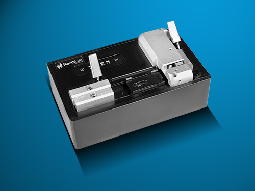 Low cleaving angles with flat surfaces can be easily achieved (<0.5o). Special platforms are available that support Fujikura, Fitel, 3SAE, but can be used without fibre holders too. This cleaver can be operated while connected to an external power supply as well as a battery (can be supplied with built in rechargeable Li-Ion battery).