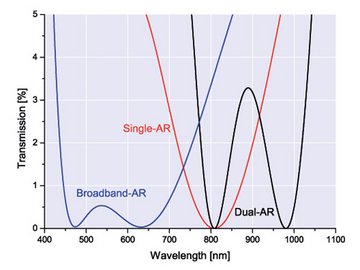 - Dual ARs: AR coating for two wavelengths e.g. 808 and 980 nm