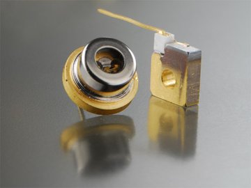 In addition to the pulse laser diodes, we now offer continuous wave laser diodes at 808 nm with 1000 mW power from our in-house production. The base material is a reliable InGa(Al)As/GaAs material with a standard wavelength selection of +/- 3 nm. A power of 500 mW is already attainable at 1.1 A with this highly efficient structure. The laser chip is embedded in a hermetically sealed 9 mm CD package.