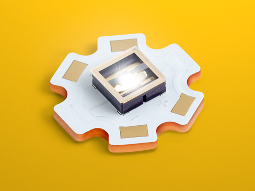 Additionally, white light sources with 1,000 lumens are now available in the same 7×7 SMD housing. This innovation is especially interesting where the light is fed into a fiber for transmission: The small spot of light and extremely high luminance allow the use of very thin fibers in medical endoscopy; longer transmission distances are possible in industrial endoscopes.