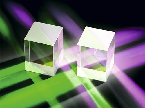 Polarizing beam splitter cubes. These components are always used when the laser power can be split via polarization. Cemented cubes are used for lasers with low energy and power densities; they are also available with broadband coatings. Optically-contacted versions are available for high-power applications: Damage thresholds above 10 J/cm² (10 ns, 10 Hz, 1064 nm) are quite resilient. In combination with l/2 retardation plates, polarization beam splitting cubes can even be used in power regulation.
